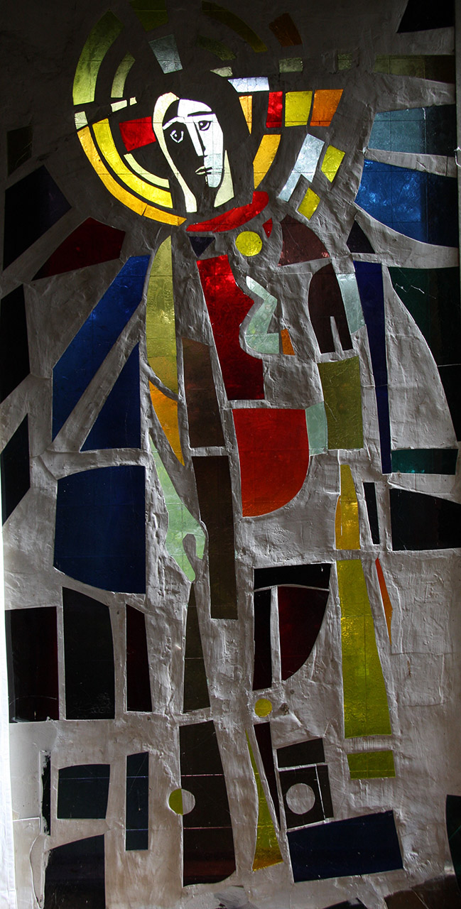 In den fünfziger Jahren arbeitete er an vielen Projekten für die "Kunst am Bau" und entwickelte die sogenannte "Glasintarsie", eine Glasmalerei ohne Zwischenstege.