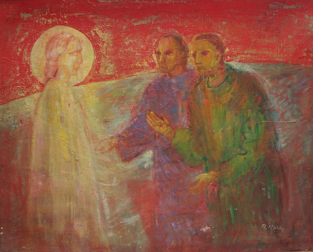 Zum anderen das religiöse Motiv, die meditative-philosophisch geprägten Arbeiten. Richard Hohly fühlte sich der Seherin von Prevorst verwandt. Er selbst knüpfte die Verbindung vom Zauber der Löwensteiner Landschaft, die immer wieder in sein Werk einfließt, zur Sensibilität ihrer Menschen für das Übersinnliche.