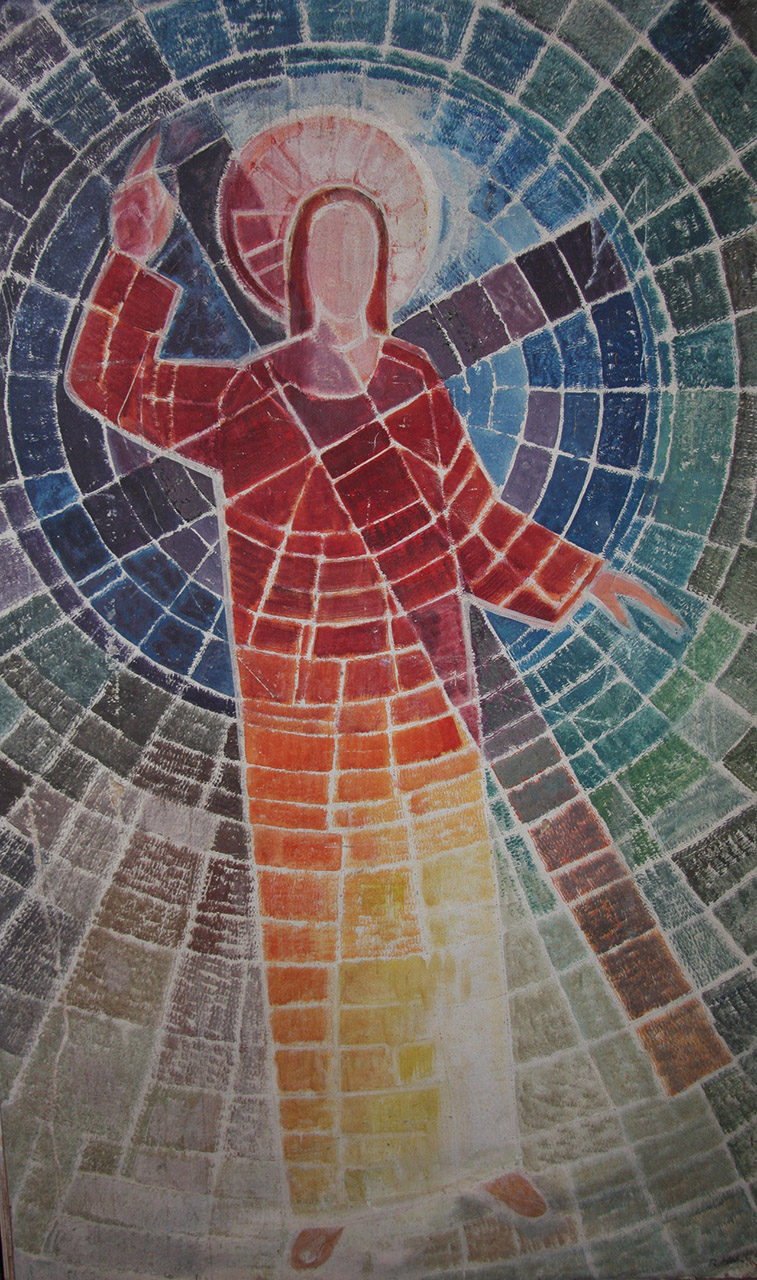 In den fünfziger Jahren arbeitete er an vielen Projekten für die "Kunst am Bau" und entwickelte die sogenannte "Glasintarsie", eine Glasmalerei ohne Zwischenstege.